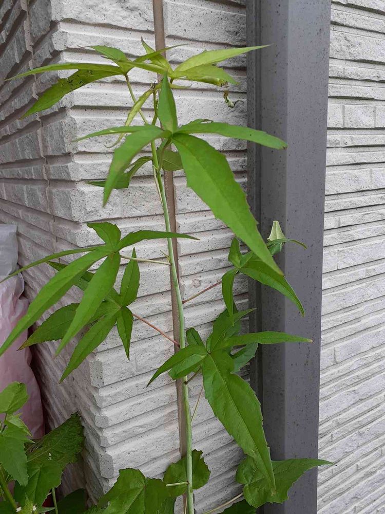 大葉を植えた鉢から突然生えてきました。伸びていくうちに、葉の形が紅葉のようなのになって、、。