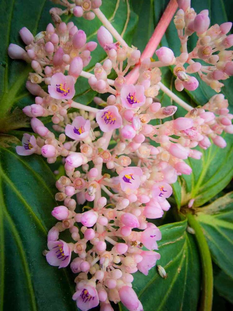 メディニラ 「火の鳥」さん。相模原公園で出会いました。メディニラさん自体はフィリピン出身らしいのですが、この「火の鳥」熱川バナナワニ園友の会の方が作られた交配種らしく、メディニラ・マグニフィカとメディニラ・ミニアータを掛け合わせてできたようです。