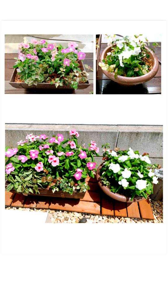 寄せ植え初心者🔰ニチニチソウ🌸先月寄せ植えして1ヶ月♡こんなにワサワサになりました🥰🙌🙌