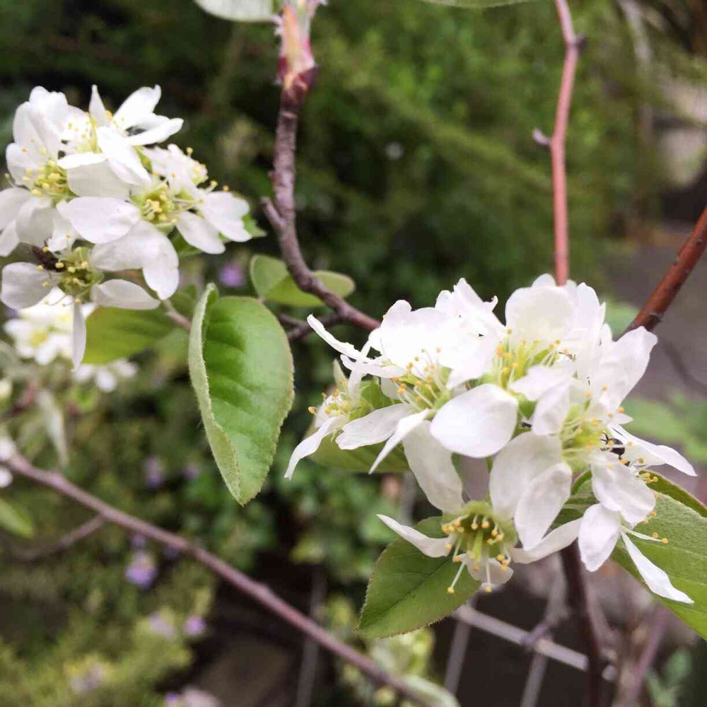 ジュンベリーおすすめよ😘💞春に可愛い白いお花が咲いて、その後ブルーベリーより少し小さい実がなって、お庭でチョちょっと洗ってお口にポイって食べちゃうよ😁