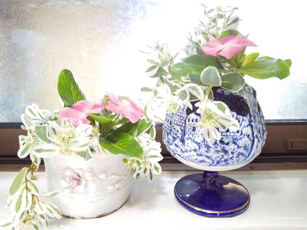 ユーホルビアと日々草の寄せ植えから、✂️してキッチンの窓際に🎶
