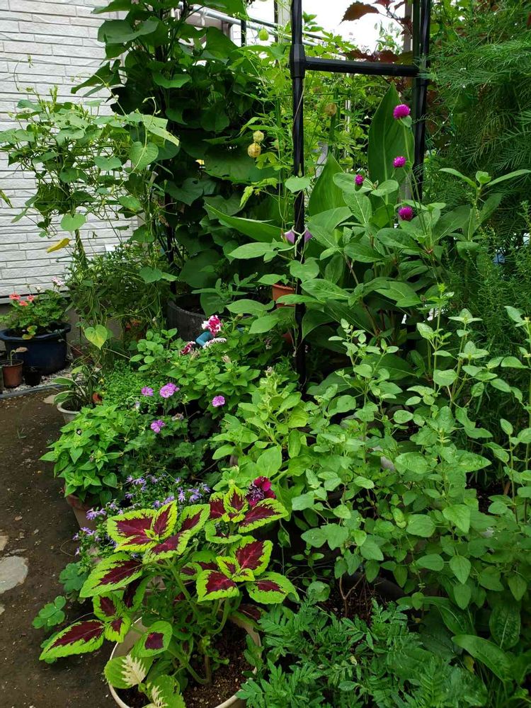 緑気味だけど、コリウスやセンニチコウやゲラニウムが彩りになってくれてます😄