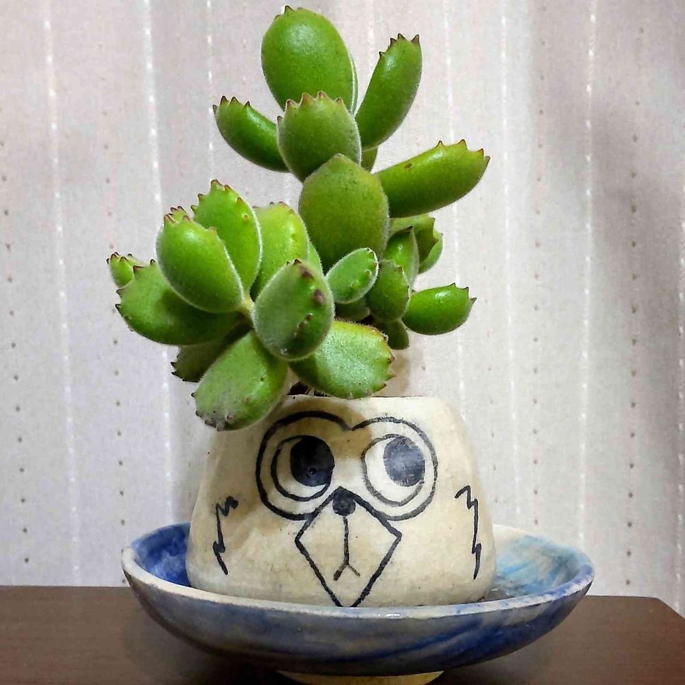 以前、陶芸を習っていたときに作った器に熊童子を植えたものです。