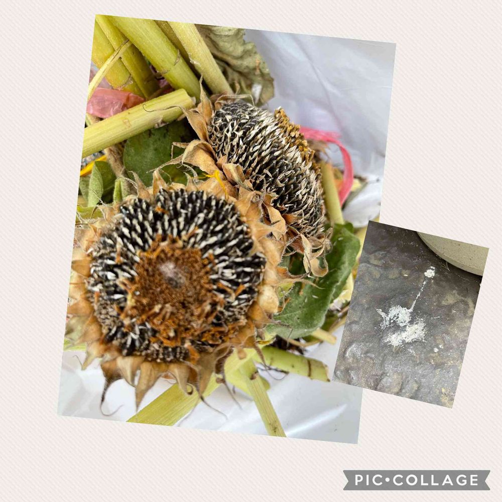 残念ながらタネを全て鳥さんにたべられてしまったようなので(↘️右下に証拠あり)今日片付けてしまいました。