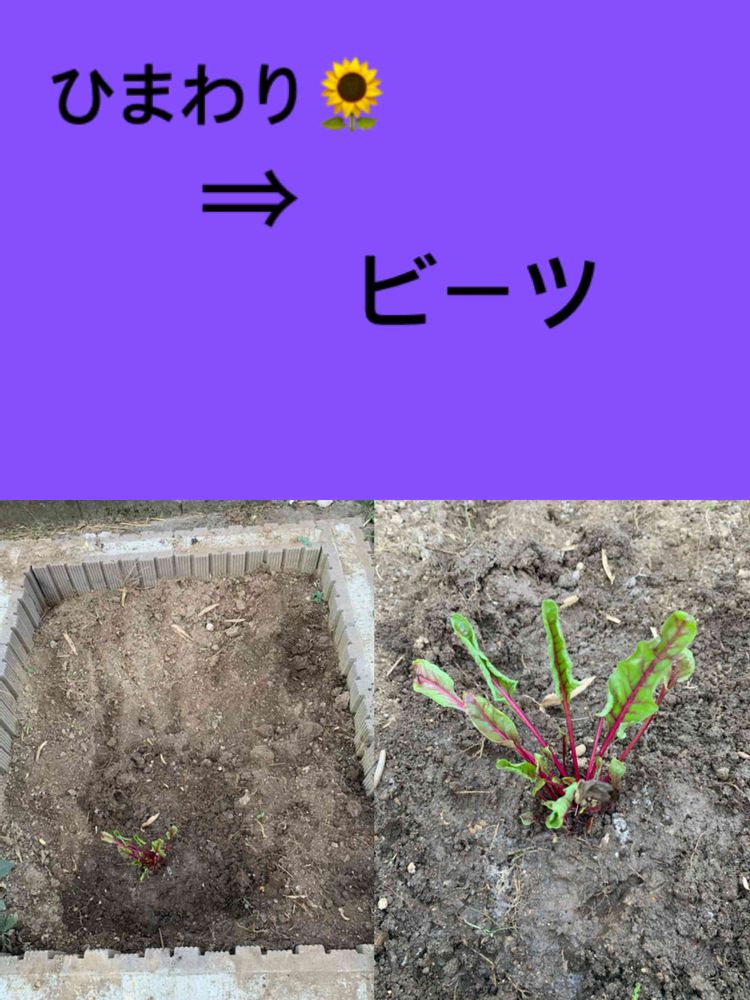 今まで ひまわり🌻畑だったのが、枯れて綺麗にして、水栽培したビーツを植えてみました、ダメ元です。