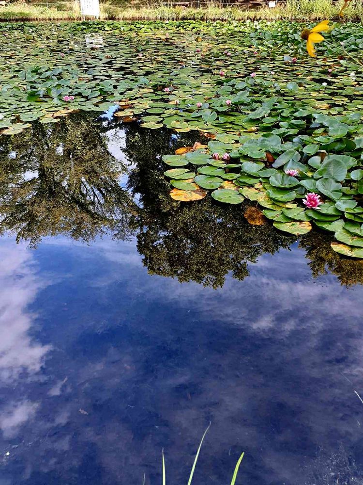 水面が鏡のように空と樹々を映し出していました。ひっくり返して見てみて下さいね😳