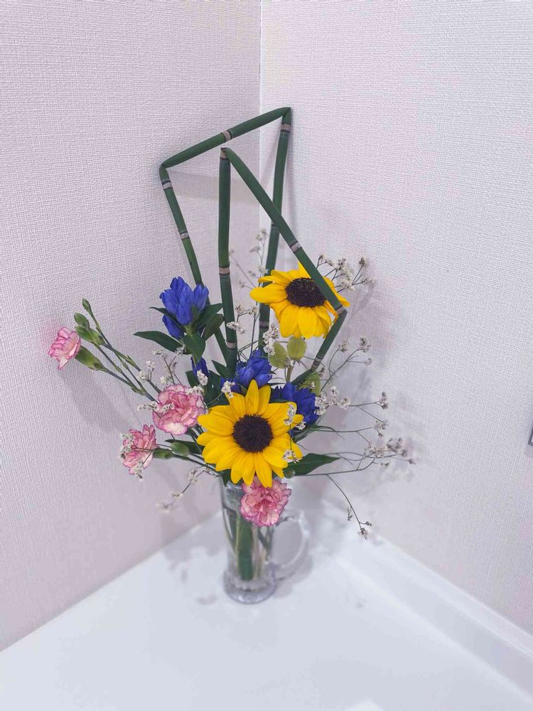 夏のお花ひまわりと涼やかなリンドウ💛💙