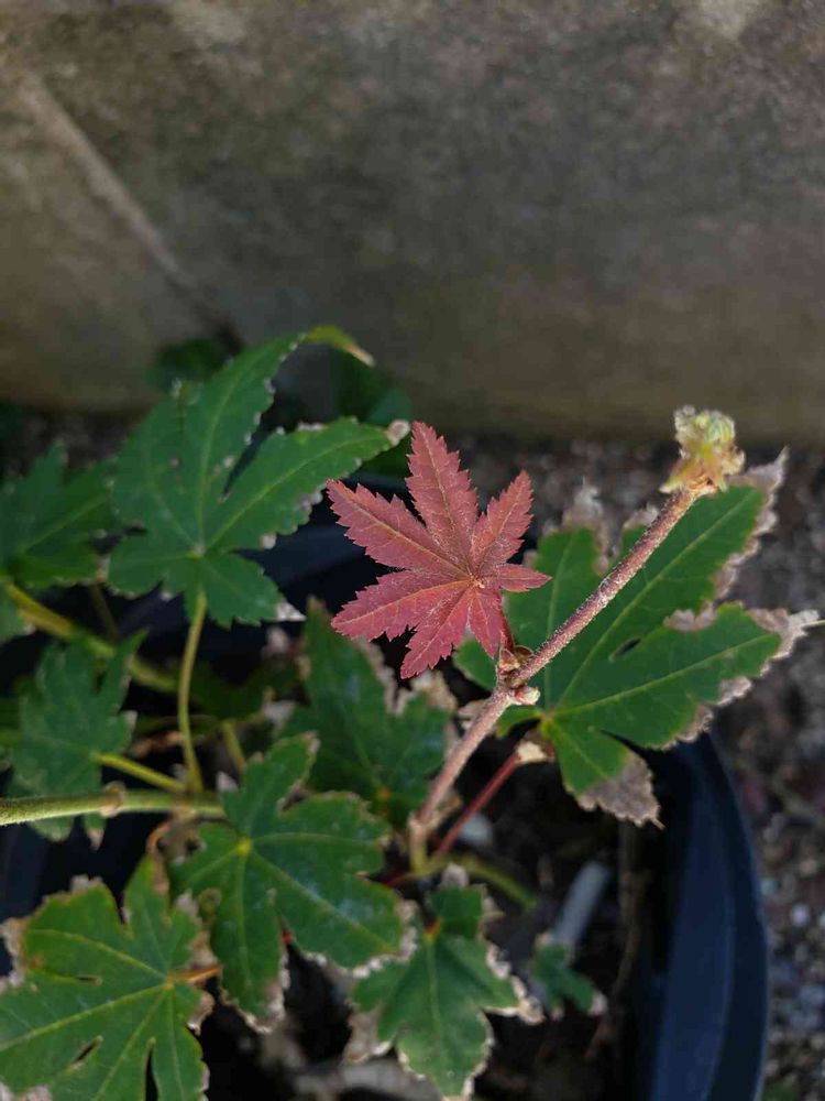 何故か紅葉してる楓。新しい葉だから気温に敏感なのかね?