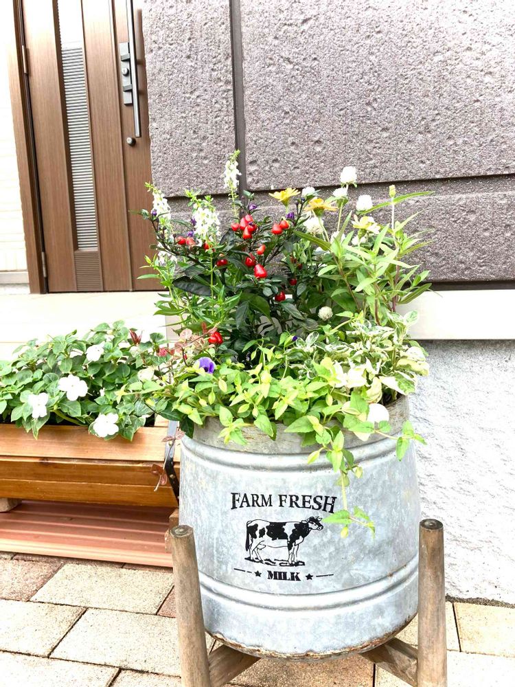 ミルク缶のプランター…、可愛いです😍