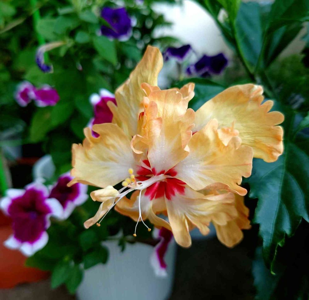 ベランダの「ハイビスカス イエローフラミンゴ」がやっと咲いてくれました🌿💛