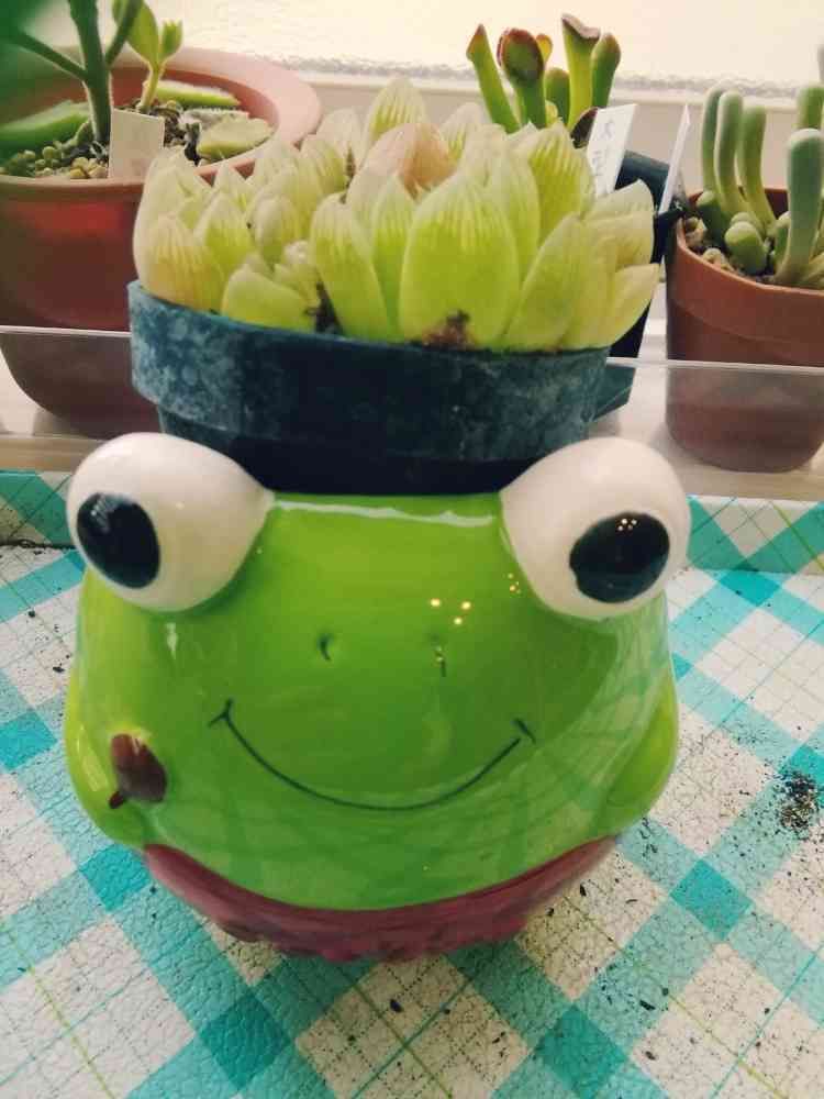 でも春までこのまま行って、暖かくなったら植え替えな〜と教わったのでとりあえずそのままカエルに背負ってもらいました😉