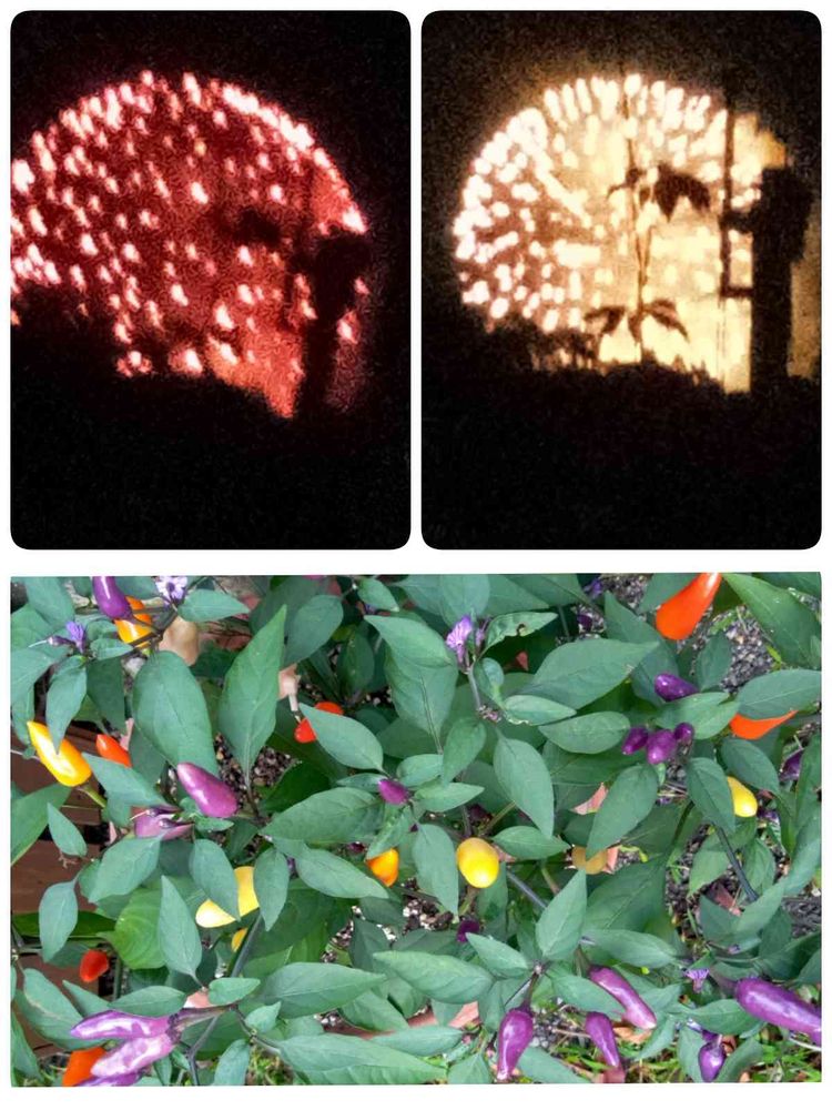 花火に負けじと、庭の色トウガラシもカラフルになって