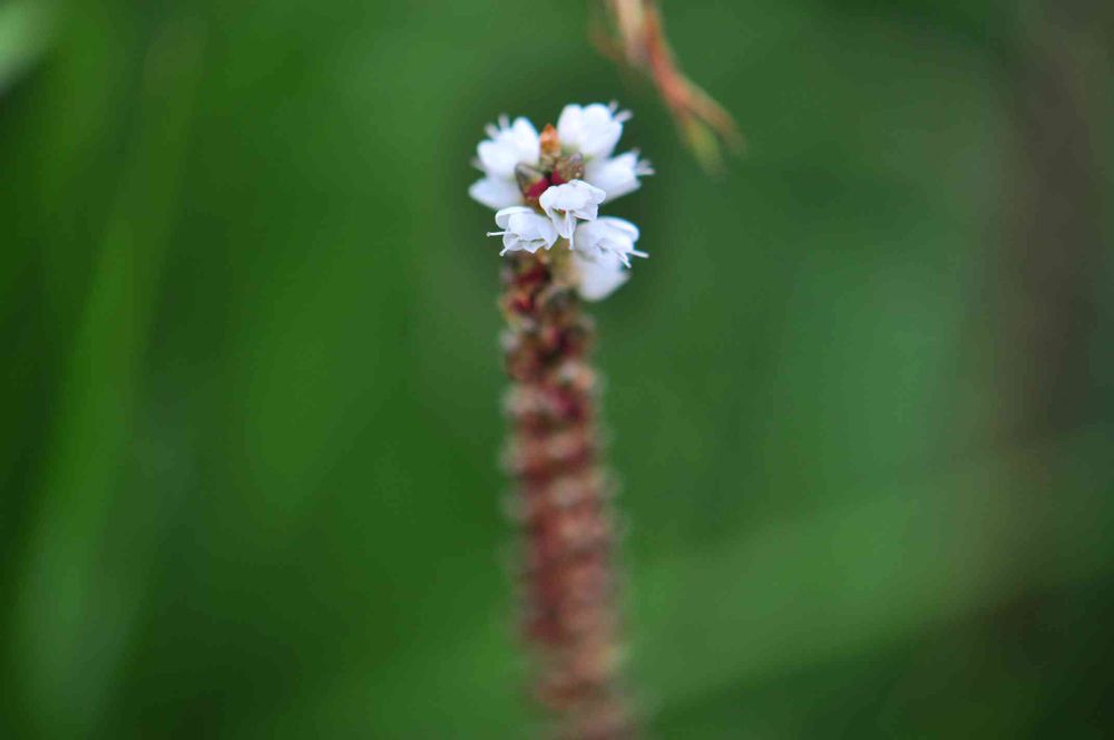*茎先に穂状の細長い花序を出し、白い小さな花をたくさんつける。