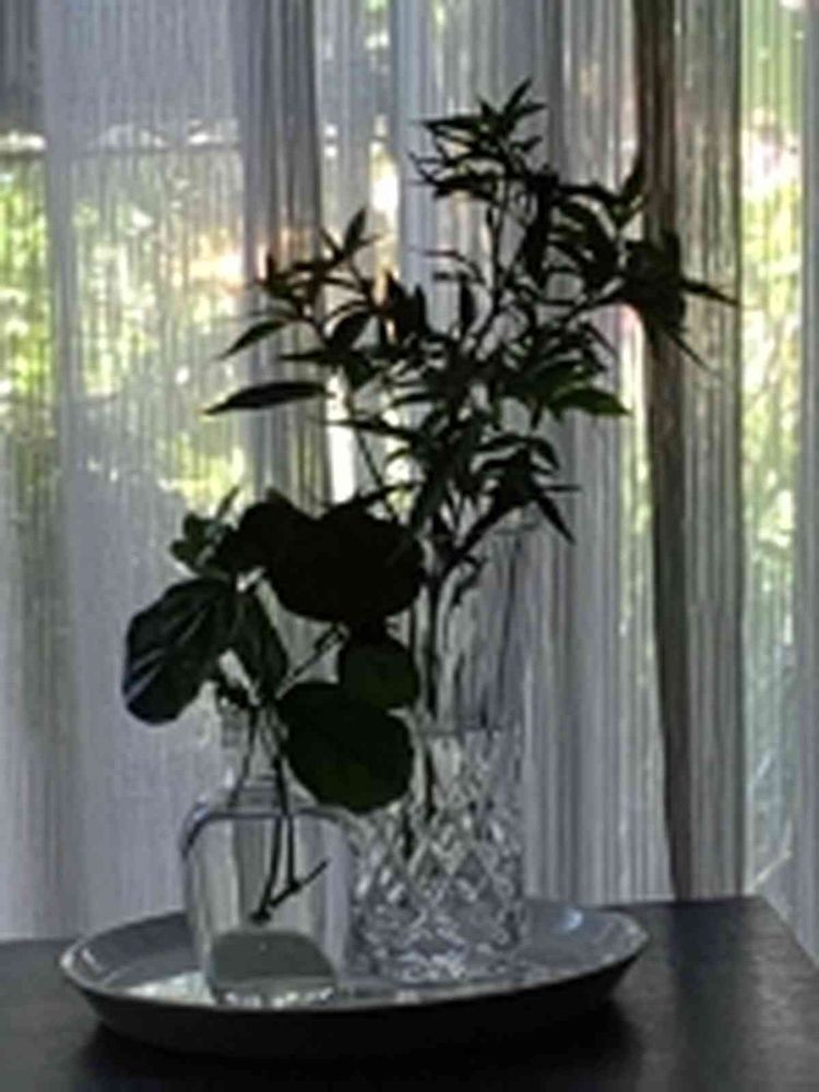 窓辺でフジバカマの葉っぱのシルエットが綺麗なので ………💦