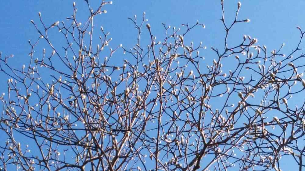 今日はいい天気、辛夷の蕾もモケモケ膨らんできてる😊