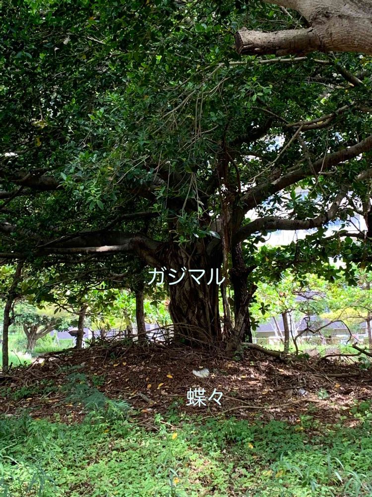 ガジマルの木陰で蝶々🦋も一休み