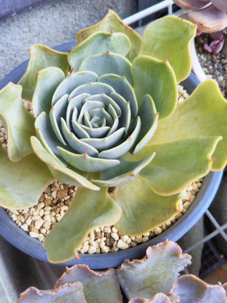 買ってからまともな水やり2回😂 ガッチガチの葉🌱 外葉は買ってきた当初の葉がまだ付いててカッコ悪いけど…茶色に枯れてから取った方が子吹きやすいとか?🙄で自然に任せてます