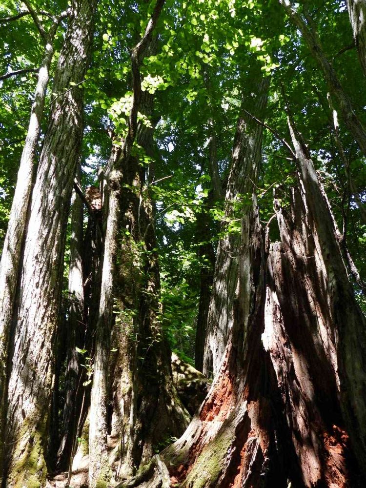 風雪で傷付いた幹から葉が繁り、新しい株が立ち上がり重厚な美しい姿に成っていました。