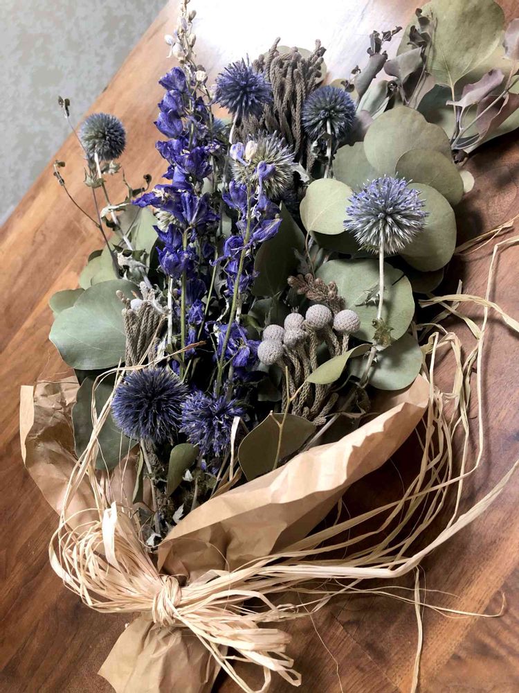 素敵です✨✨✨デルフィニウムもドライフラワーになるのですね、しかも色目を濃く残したまま🥰