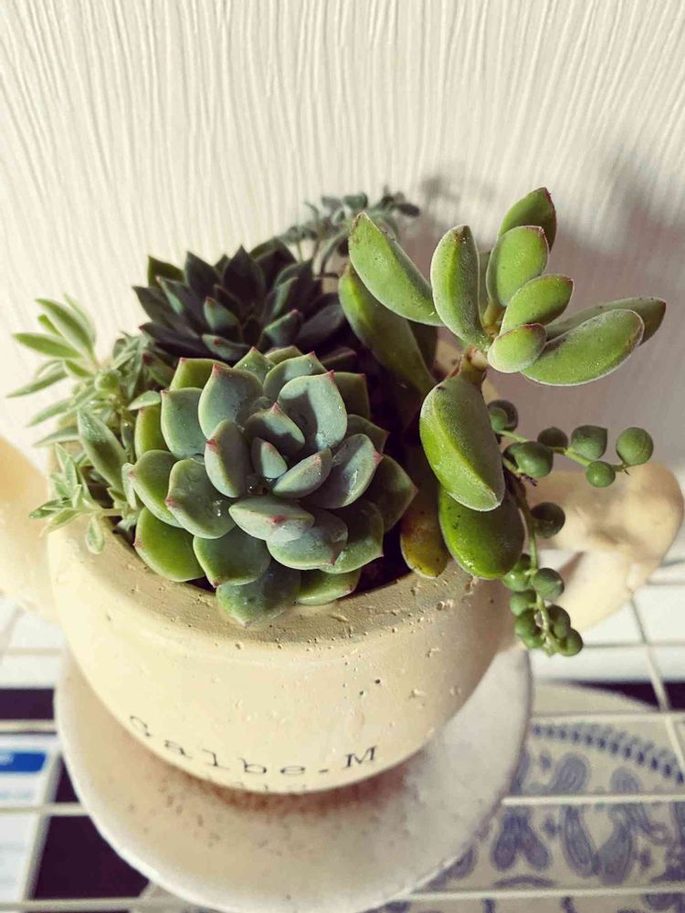 可愛いポットを見つけたので、可愛い多肉ちゃんを集めて寄せ植え❤︎