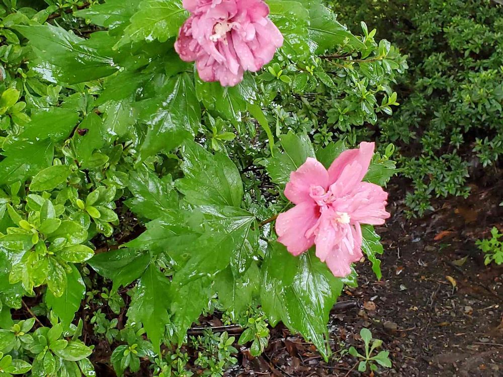 雨に濡れた鮮やかなムクゲか私を呼んでいたように思えて、近寄ったらなんと八重咲きのムクゲさんでした😲