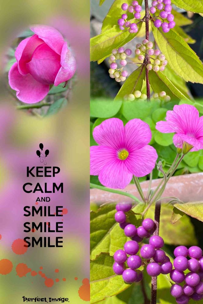 庭のピンク色をコラージュしました。