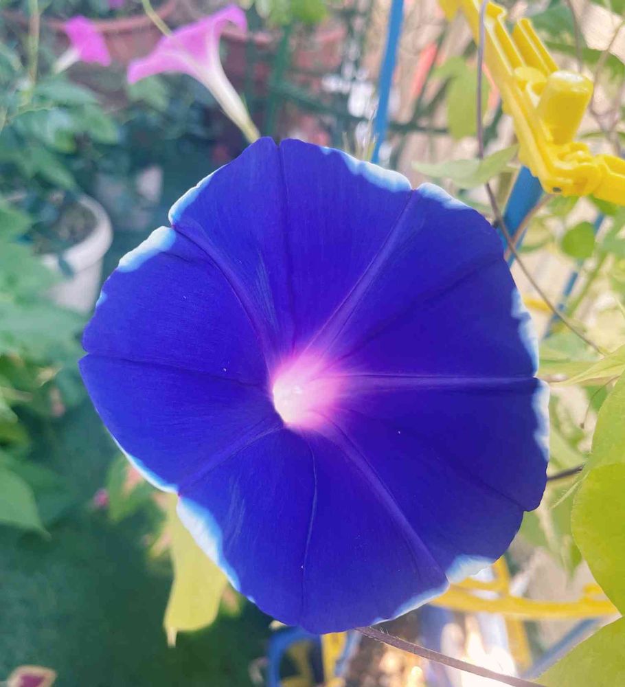 去年の子供が育てた朝顔のこぼれ種から育った子達も絶好調に咲いている~