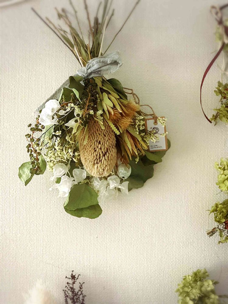 季節の草花をドライフラワーにしてスワッグやリースを作っています。