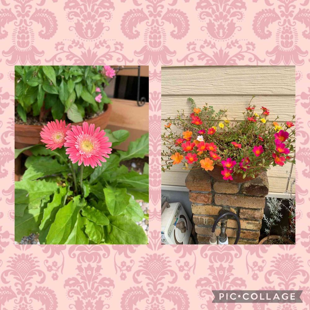 100円見切り品のガーベラさんと、切って挿しただけ0円ポーチュラカ丼ーーーっ🤣