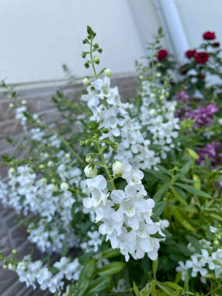 ふんわり広がるタイプのアンゲロニアです💕紫とピンクは、どんどん咲くのに、この子だけなかなか咲かなくて、やっと咲き出しました☺️のんびり屋さんなんですね🥰