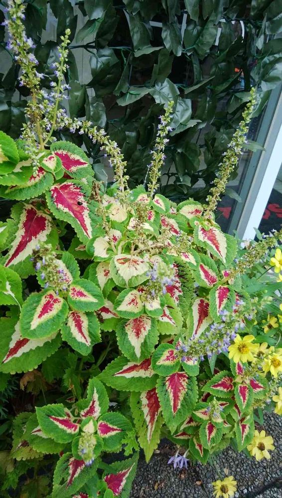 美容院の前のコリウス
