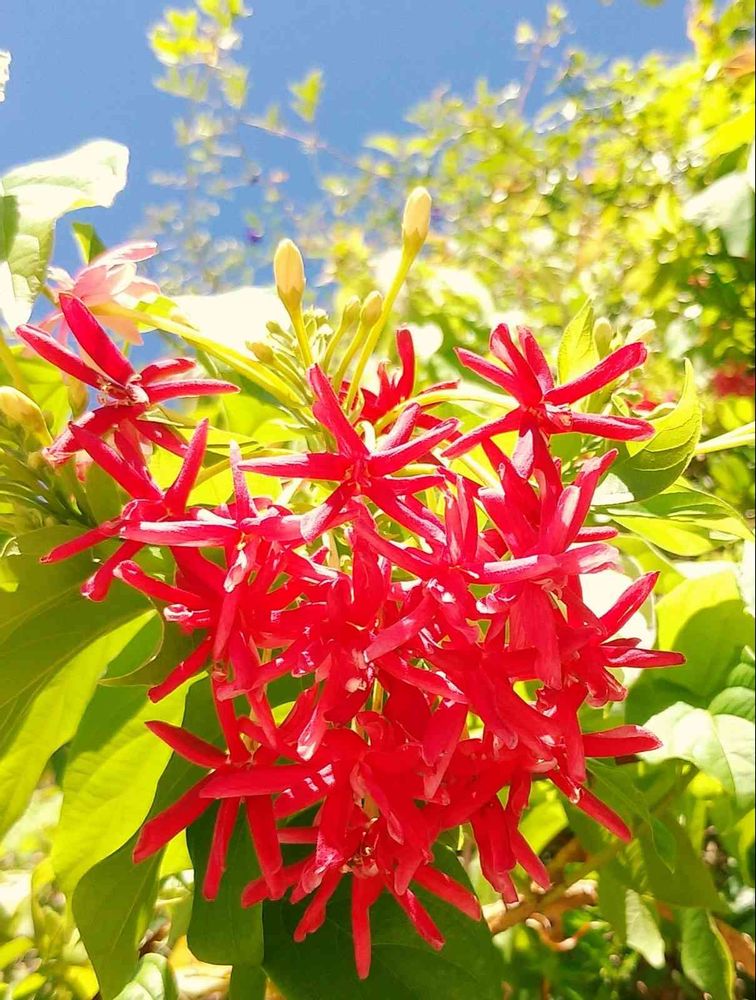 そちら今日もいいお天気なんだね!赤い花が青空に映えてます!