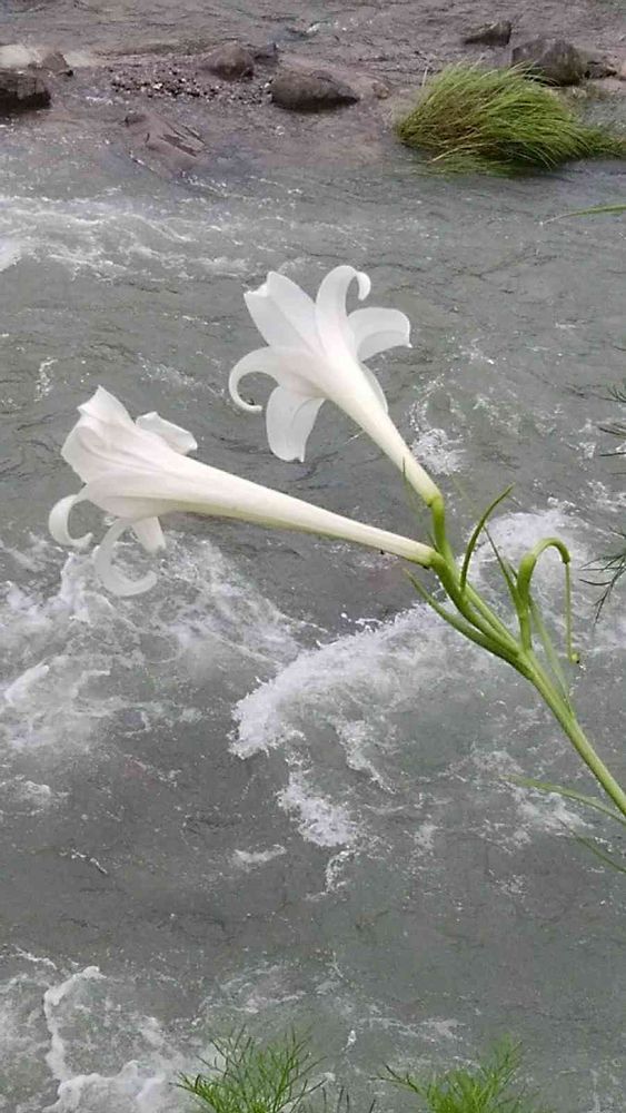 清らかな流れとシンテッポウユリ、素敵だわ~🍀🍀🍀