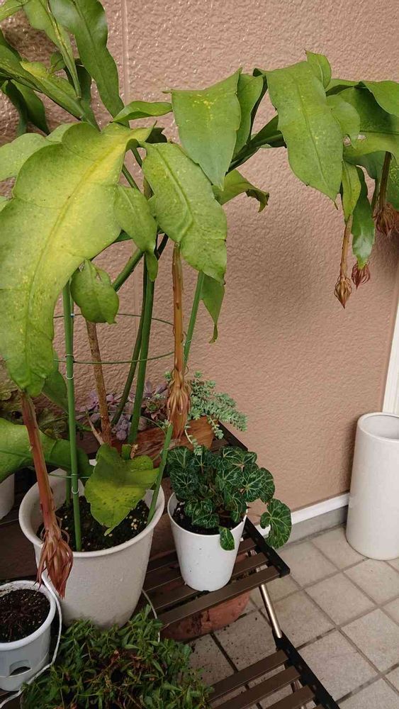 月下美人の蕾が 段々 大きくなって 今朝見たら 少し上を向き始めました🤗