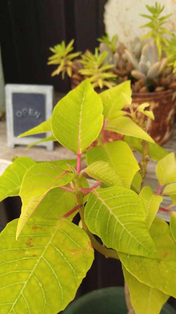 ポインセチアは元気だ。先日の暑い日に水忘れたら一部枯れちゃったけど…。今年の冬は色付いてくれるかなぁ…。去年はみんな葉っぱ落ちちゃった(´・ω・`)