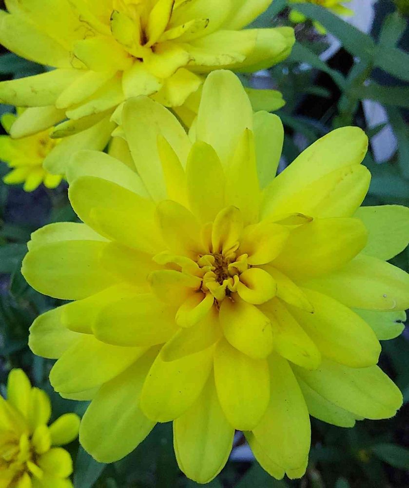 ジニアさんまだまだ元気に咲いてますね❣️透明感のあるレモンイエロー🍋