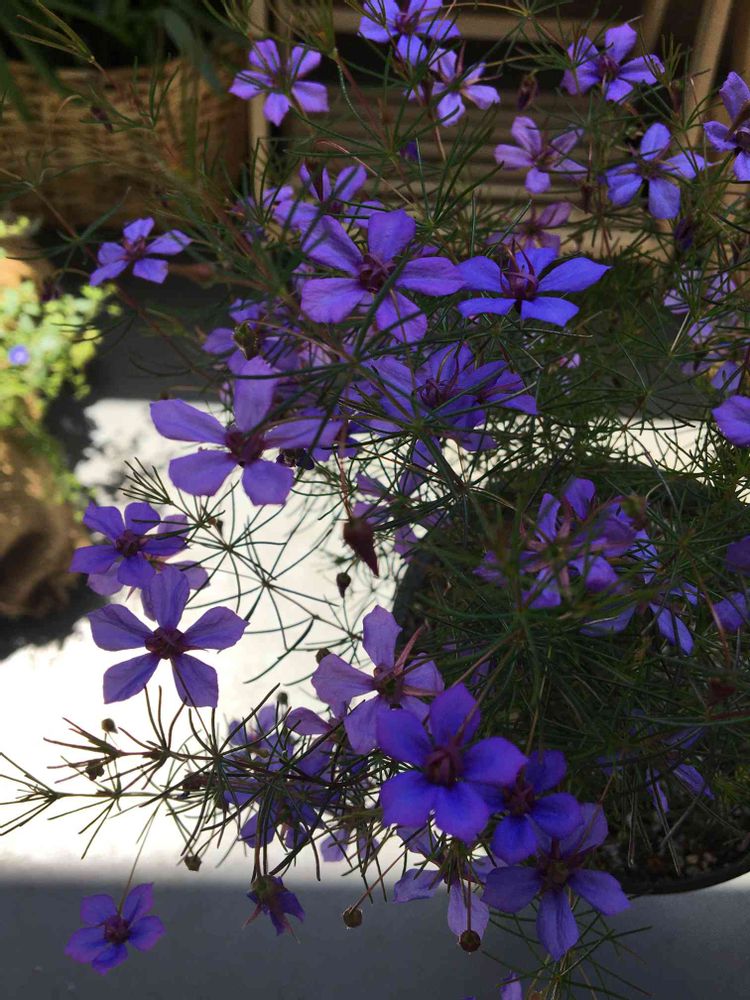 初めて見る花です。ブルー色が凄くキレイ。何かと弱いお花みたいなので、私には無理かな?こんなにたくさん花を咲かせていらっしゃるなんて尊敬します😃