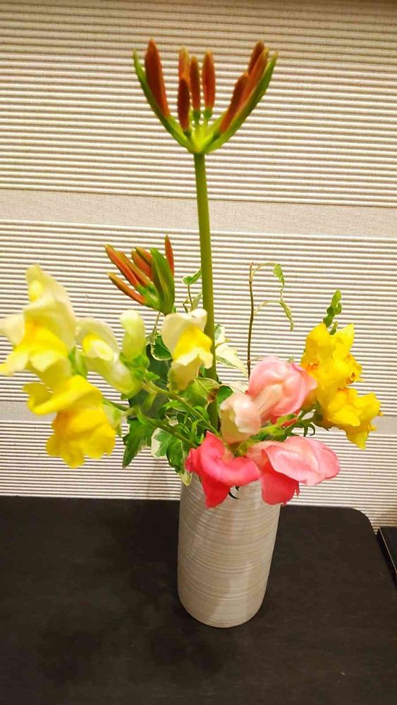 きんぎょ草と彼岸花のアレンジ💗💚💛💚💖