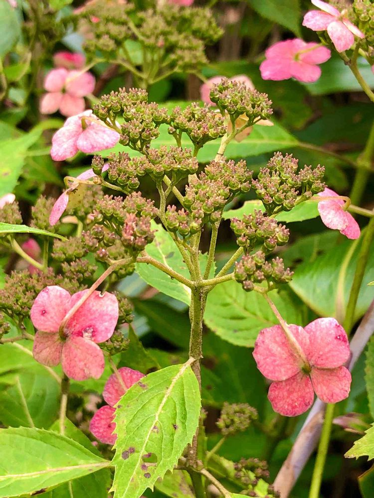 赤味を帯びたヤマアジサイ、まだ頑張っています😍