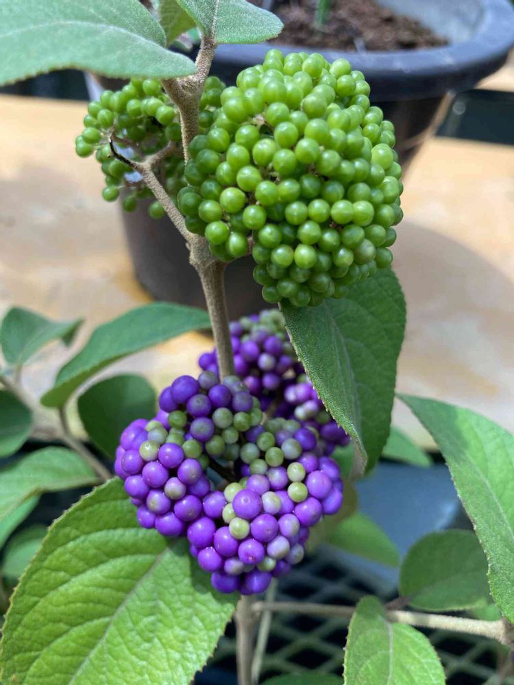 紫式部 色鮮やかに色づいて来ましたね💜💚
