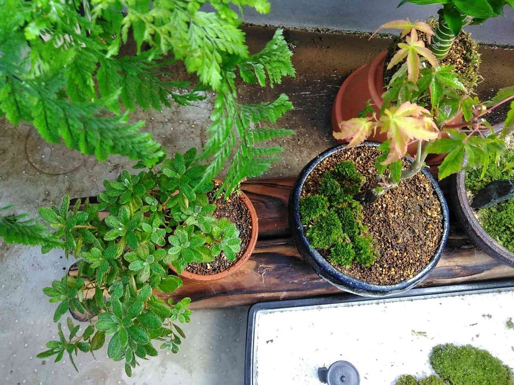 明るい日陰の狭いベランダに植物の癒し和風空間を造ってみてます。侘び寂び感ある山野草と盆栽に惹かれてます。