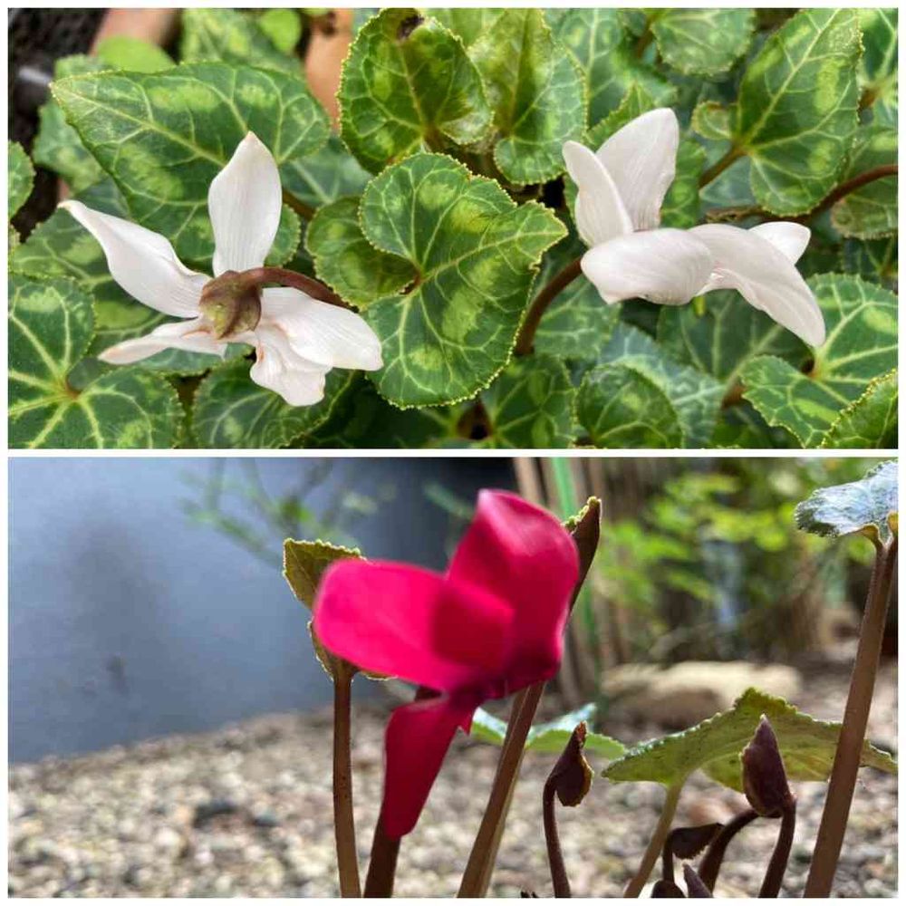 今年も白のガーデンシクラメンは欲しいと思ってるよ☝️どの色が残ってるのか分からない💦葉っぱだけだもん😮💨咲く気配なし😮💨