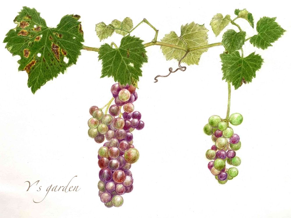 色鉛筆で描かれた葡萄も美味しそう🍇٩(๑>∀<๑)۶