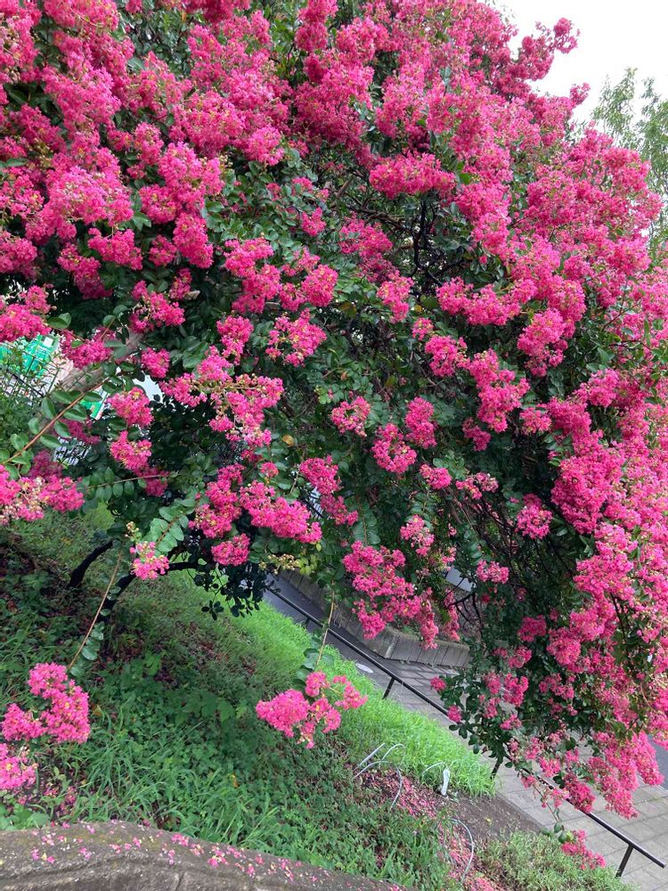雨の日のサルスベリの花の🌸ピンクが、とても元気づけてくれました😆🎶