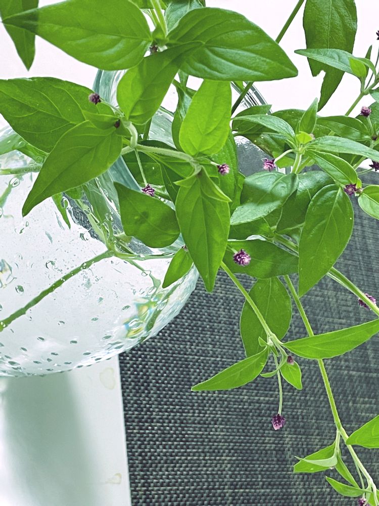 葉っぱが生き生きしています。 お花ちっちゃくてかわいいですね。うちも普通の千日紅は仏花に、セロシアやジニアとともに役立っています。暑い時は2日しか切り花保ちませんでしたが、これからはもう少し保ちますね。