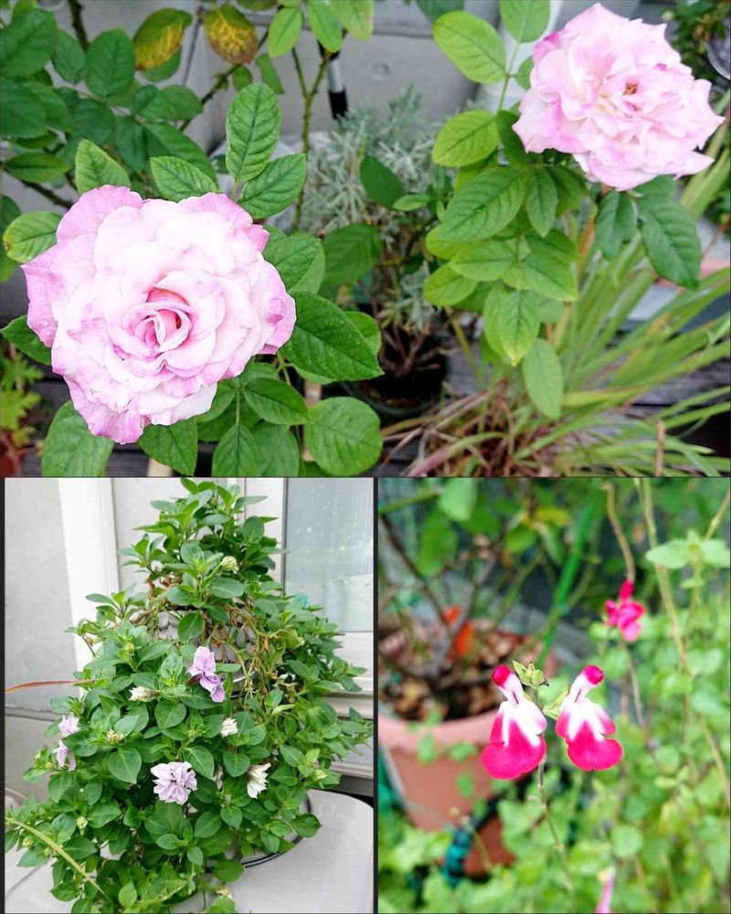 左下はペチュニア ドレスアップ ラベンダーです。長雨でヤバかったのですが、その後、日に当たるようになり葉がこんもり繁ってきて、ここ2日で花が増え出しています🎶