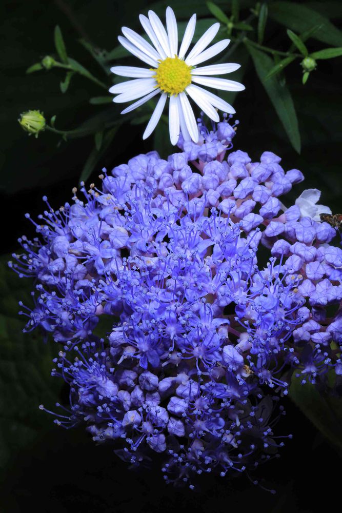 タマアジサイの上にちょこんと乗ってるみたいなノギクも可愛い💕