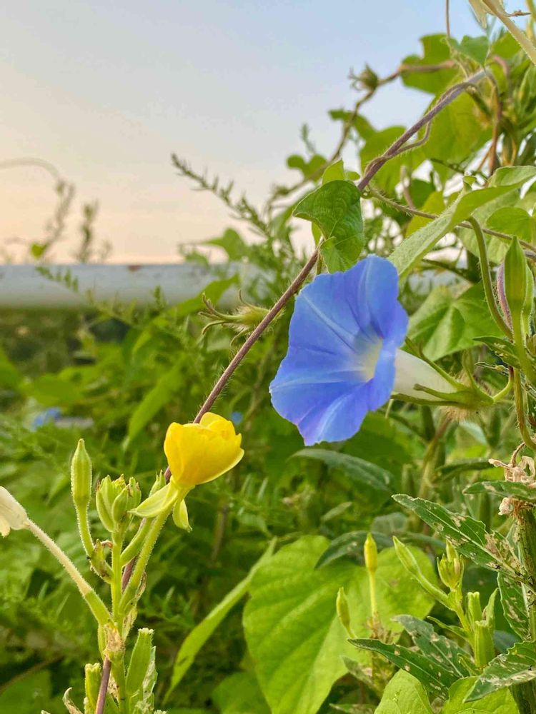 メマツヨイグサ💛とアメリカアサガオ💙の語らい💗💕
