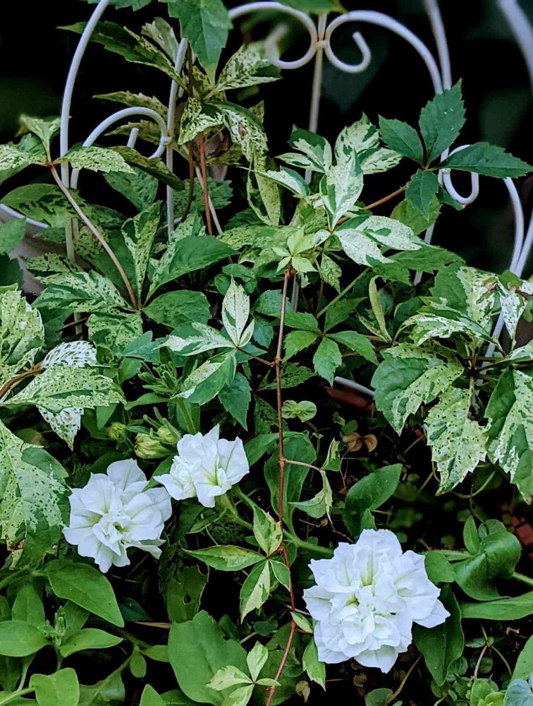 アメリカヅタと白のペチュニアが素敵な取り合わせね💕