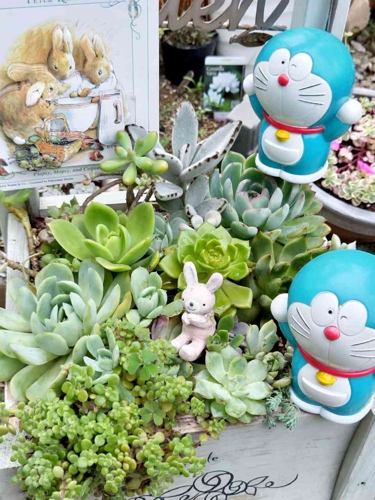 ドラえもん 寄せ植えの中に馴染んでて 可愛いね💕💗💕